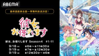 イベント情報 ABEMA:『彼女、お借りします Season4』最終話直前!無料一挙放送決定 ニュースの要約大人気アニメ『彼女、お借りします Season4』の最終話直前、ABEMAで全話無料一挙放送!9月18日(... 2025.09.17 イベント情報