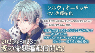 イベント情報 『イケメン王子』シルヴィオ=リッチ愛の命題編配信開始!豪華キャンペーンも ニュースの要約イケメンシリーズ人気作『イケメン王子』で、佐藤拓也さんCVのシルヴィオ=リッチの愛の命題編が配信開始!配信... 2025.08.23 イベント情報